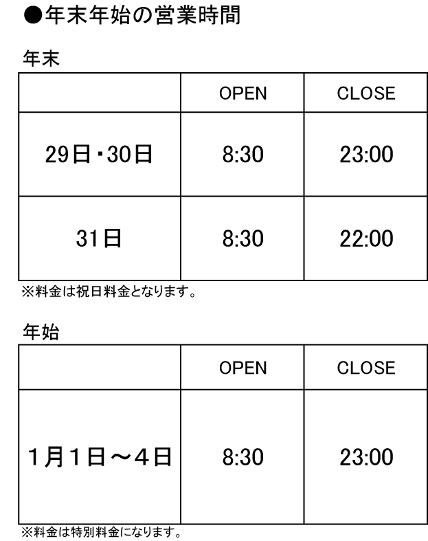 年末年始の営業時間のお知らせ